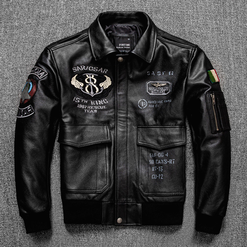 New Flight Suit First-Layer Cowhide Genuine Leather Jacket Trendy Biker Jacket Large Size Men's Leather Jacket Short Spring and Autumn Coat