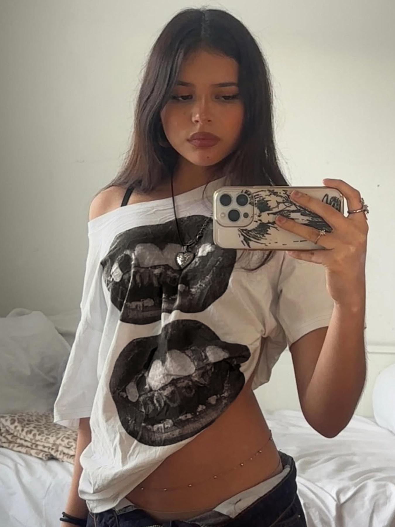 Darlingaga American Street Style Hippie Personalized Printed Off-Shoulder Top for Women, Lazy Loose Casual White T-Shirt