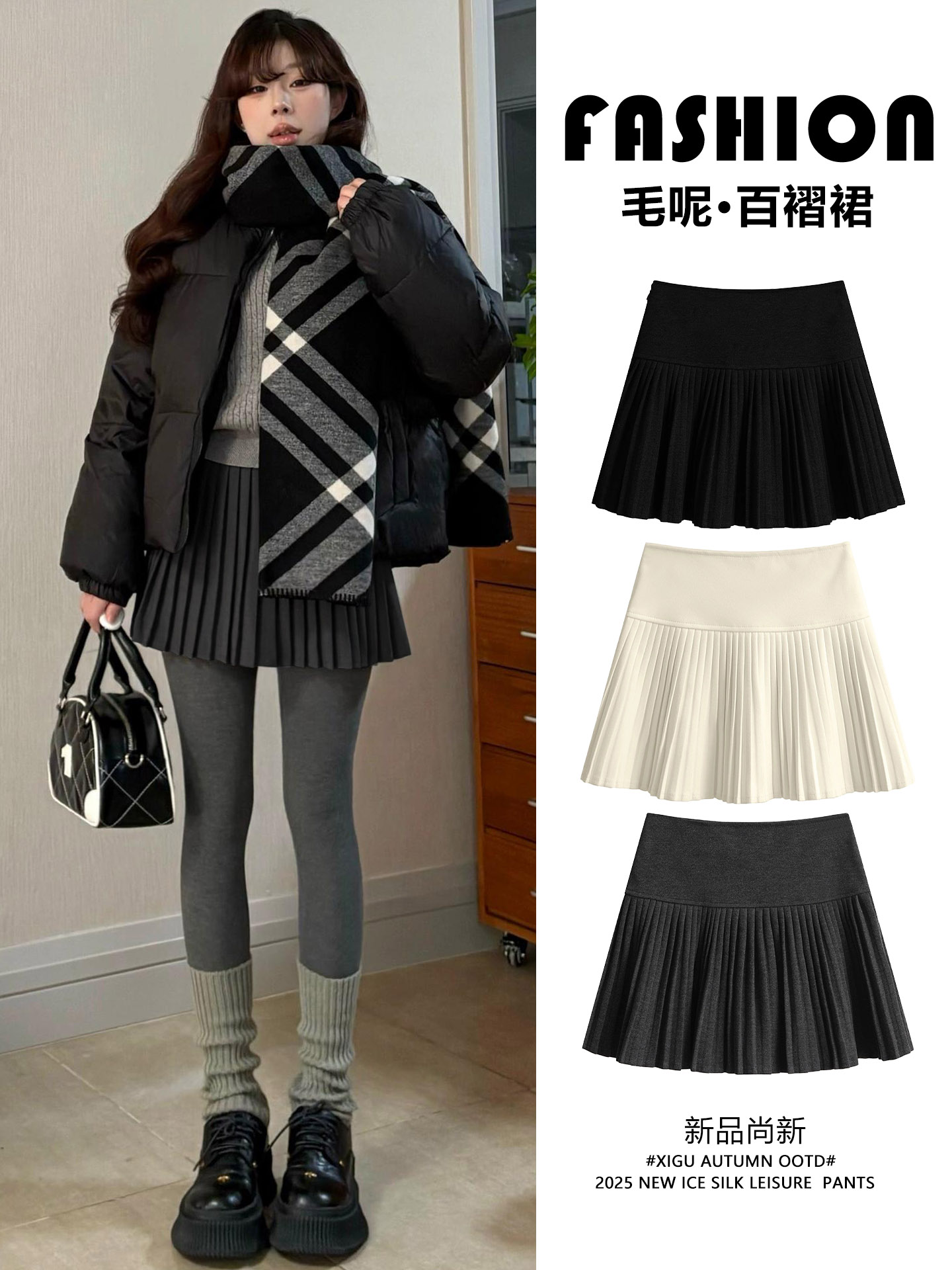 Gray Woolen Pleated Skirt for Women, Autumn and Winter 2025 New High-Waisted A-Line Skirt, Jk Pear-Shaped Berkeley Short Skirt