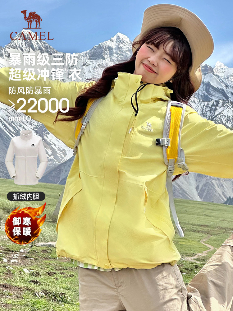 Camel Outdoor Moon Shadow Yellow Jacket for Women, Autumn and Winter Windproof 3-in-1 Liner, Waterproof, Three-Proof, Warm Jacket for Men