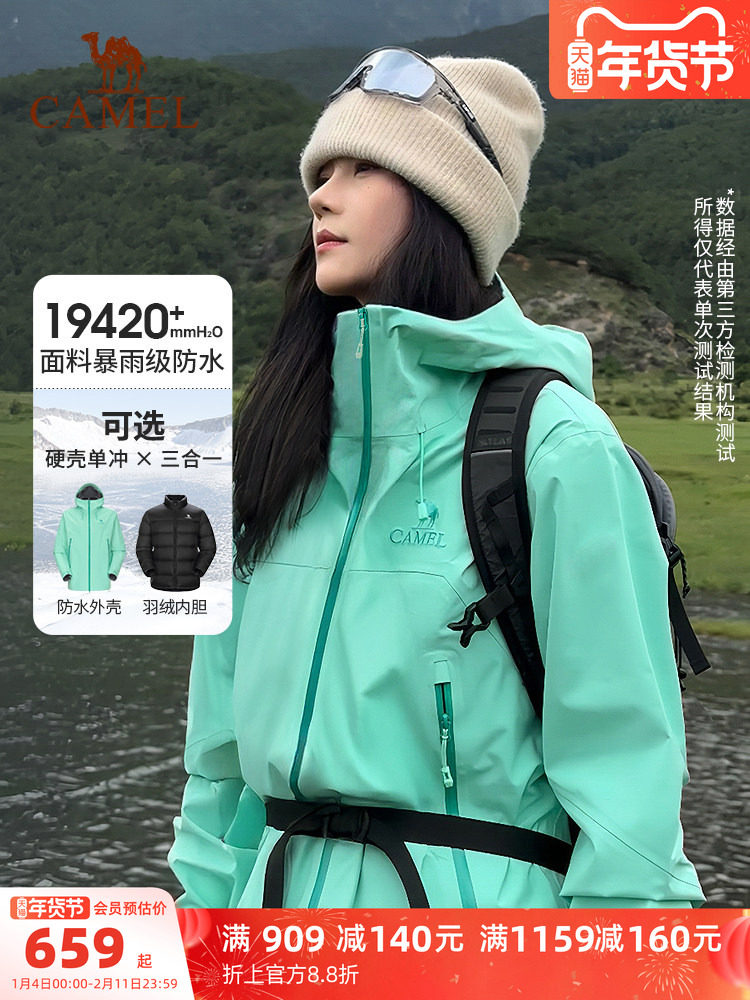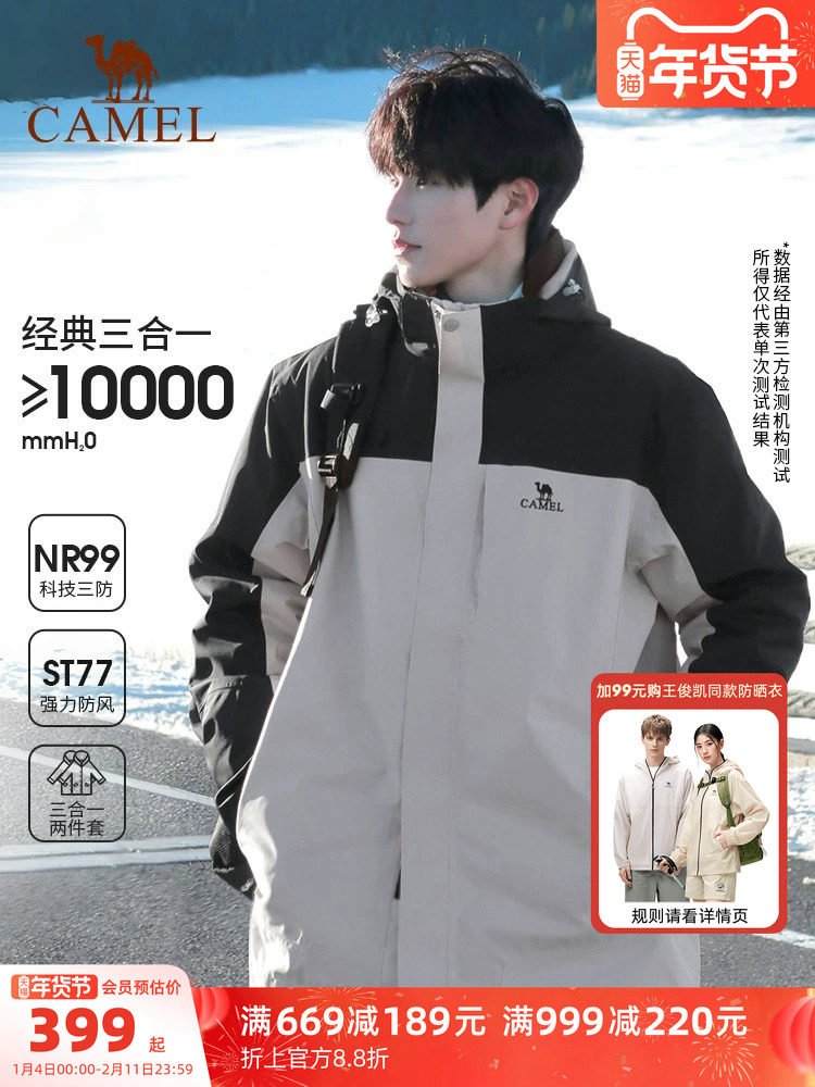 Camel Outdoor Rain God Jacket Men's 3-in-1 down Jacket Winter Waterproof Coat Women's Three-Proof Travel Ski Jacket
