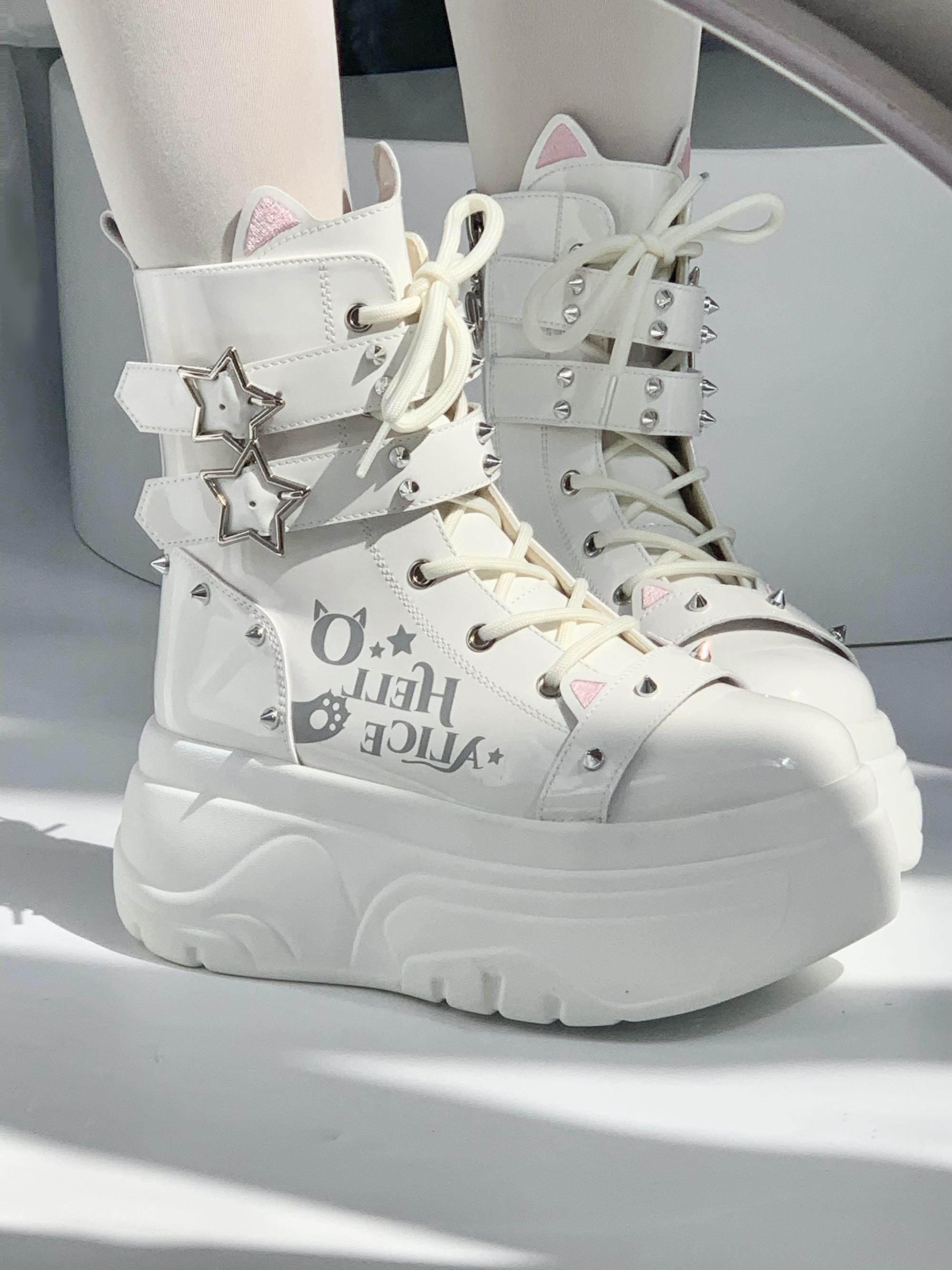 【Increase Height by Approximately 4.5Cm】Thomwills Ice Crack Pattern Thick-Soled Sneakers Men's Casual White Shoes Trainer Winter