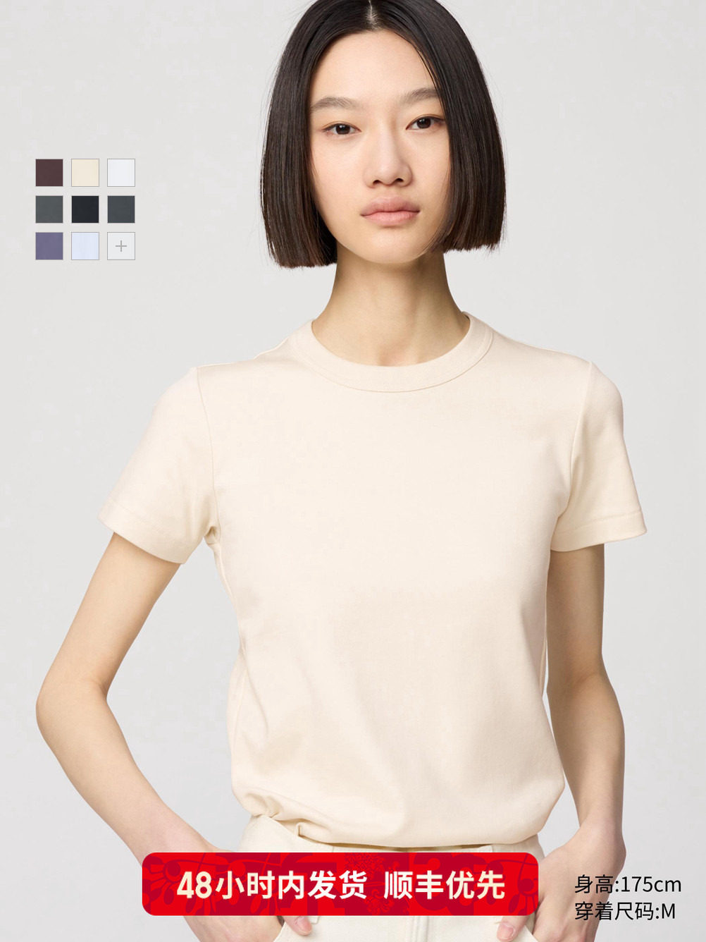 Priority Express Uniqlo Women's Round Neck Short T-Shirt/Short Sleeve 26 Spring/Summer New Style 483455