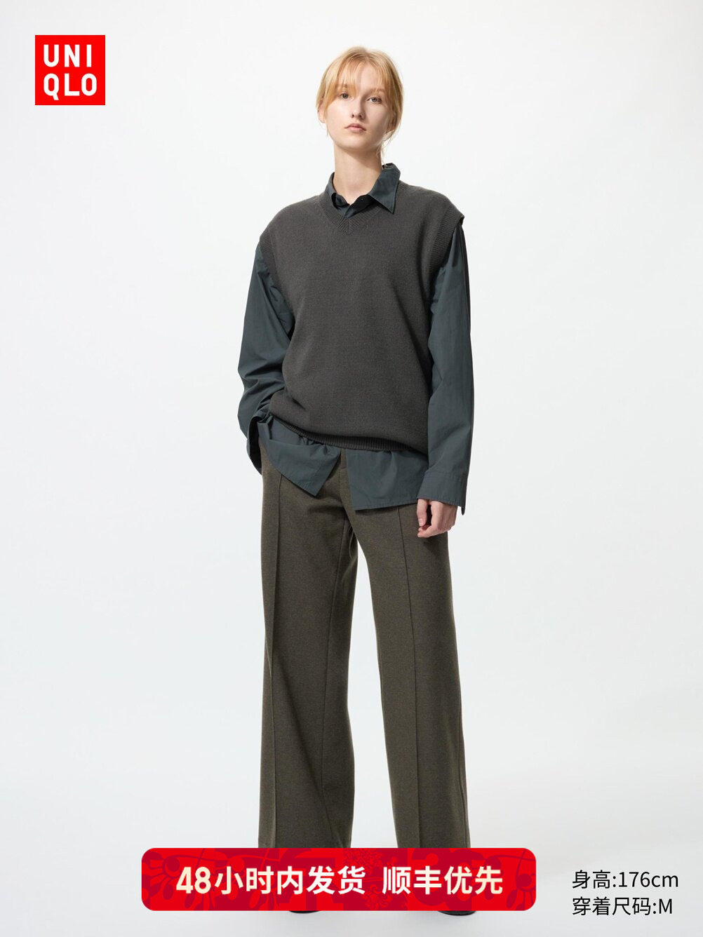 Extended Length Version, Priority Delivery Via Sf Express, Uniqlo Women's Suede Knit Wide-Leg Pants/479285