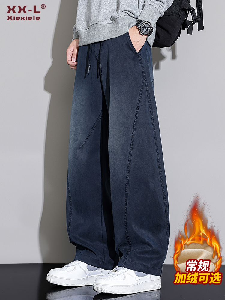 2025 Autumn/Winter New Style Scimitar Jeans for Men, Fleece-Lined, Thickened, Loose Straight-Leg American Style Trendy Casual Long Pants