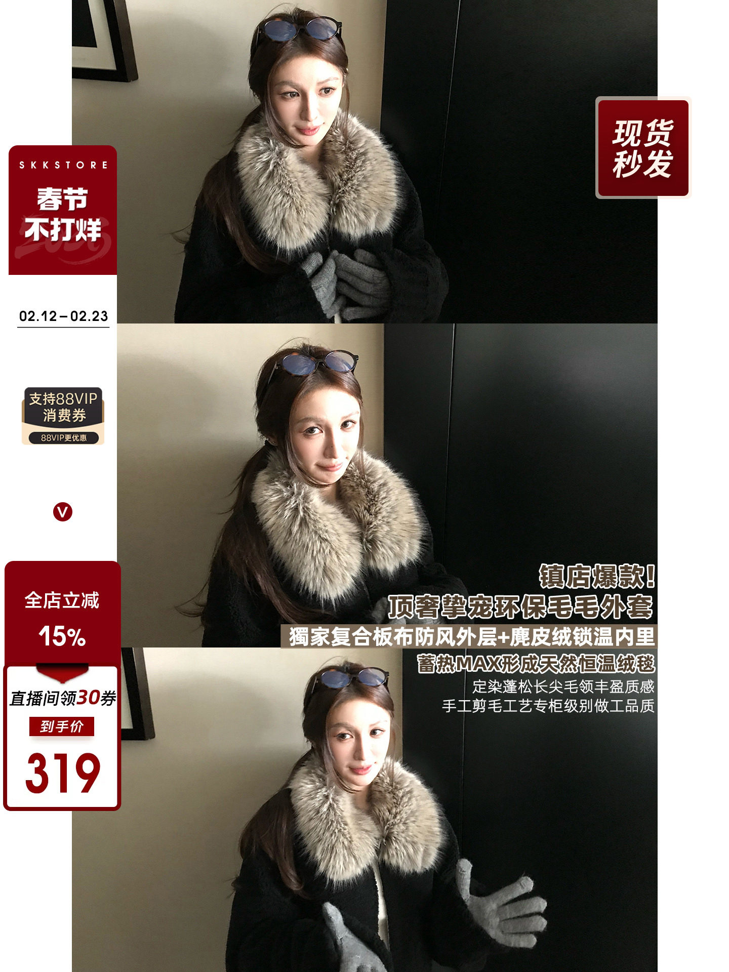 Skk Store Hokkaido Love Song Fleece-Lined Custom-Dyed Fur Collar Composite Eco-Friendly Particle Fur Coat
