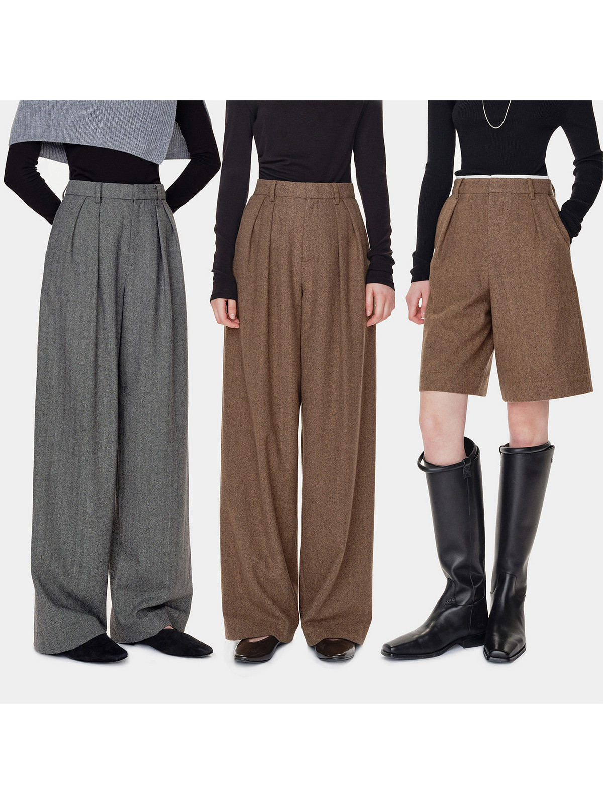 Marllen Retro Versatile Old Money Style Herringbone Wool Wide-Leg Pants/Shorts/Contrast Color Shorts for Women in Autumn and Winter