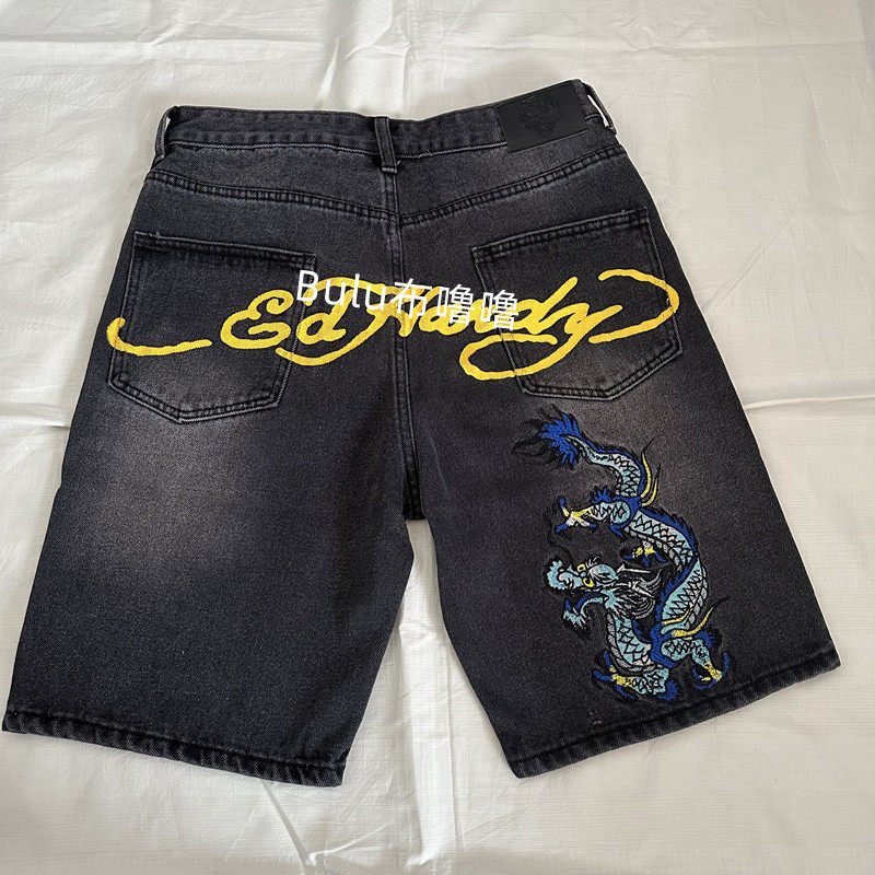 Oldschool American Retro Colorful Dragon Embroidery Letter Print Mid-Length Pants Hip-Hop Street Loose Skateboard Shorts