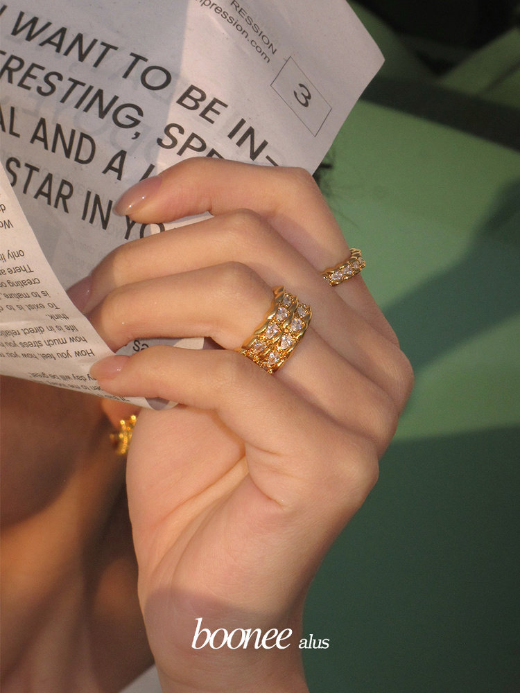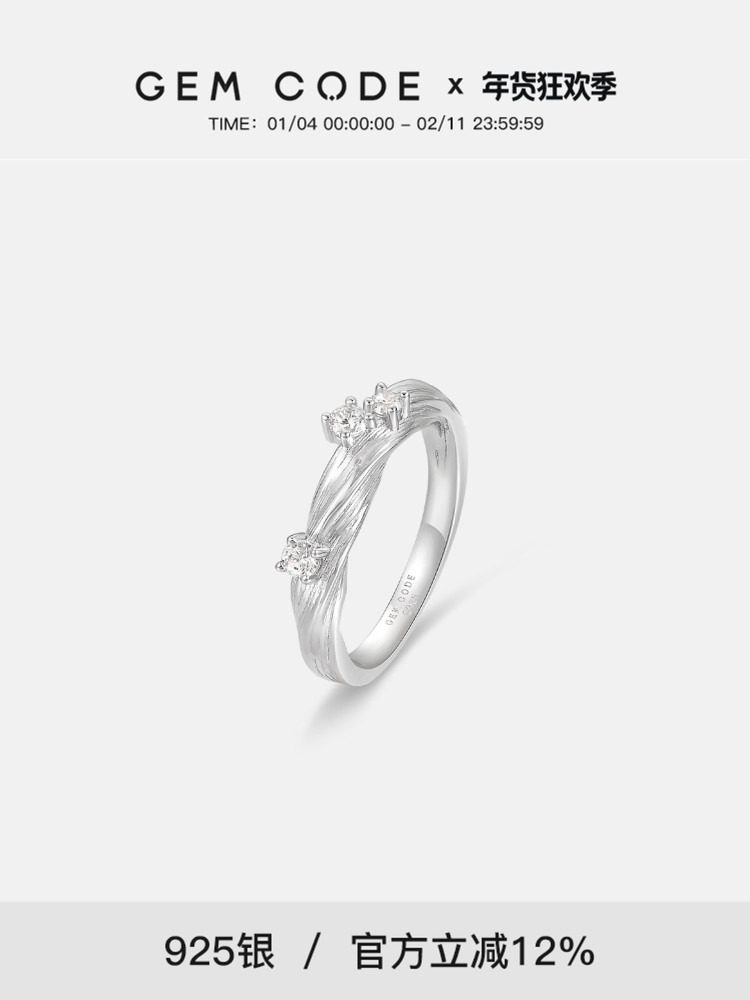 Gem Code Salt and Sea Ripple Series 925 Silver Gold-Plated Single Ring Birthday Gift