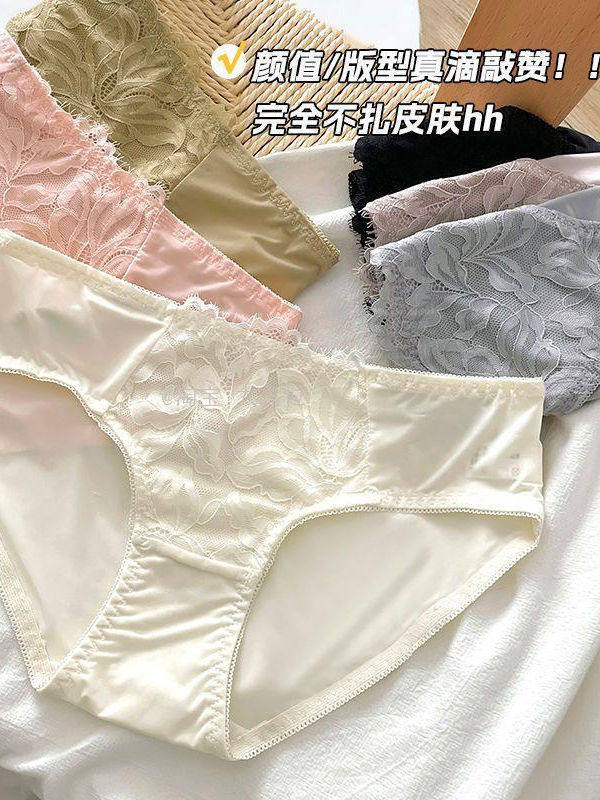 New Lace Seamless Underwear for Women, Japanese Style, Cloud-Like Breathable Mid-Waist Skin-Friendly Ice Silk Antibacterial Triangle Panties for Girls