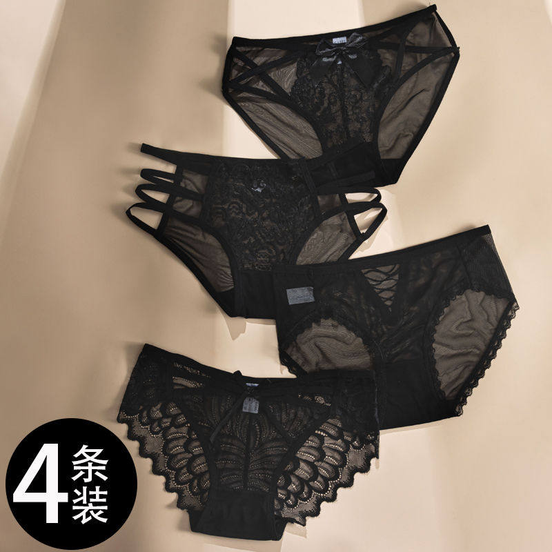 New Lace Panties for Women, Black Mid-Waist Hollow Mesh, Sexy Women's Panties, Seamless Girl's Triangle Panties for Women