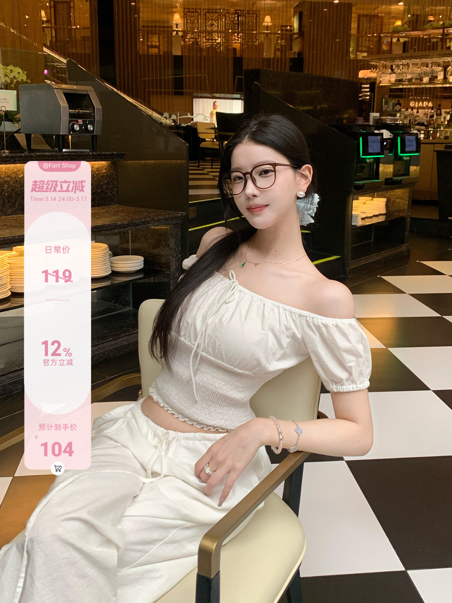 【Fart Shop】Southern French Style Girl's Off-Shoulder Ruched Design Pure and Alluring Off-Shoulder Waist-Cinching Short Shirt for Women