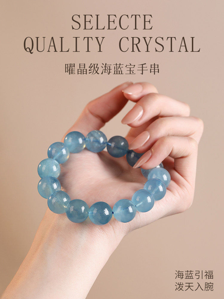 Putuo Mountain Natural Brazilian Ice-Type Obsidian Grade Aquamarine Bracelet Devil's Sapphire Bracelet, Each Piece Carefully Selected