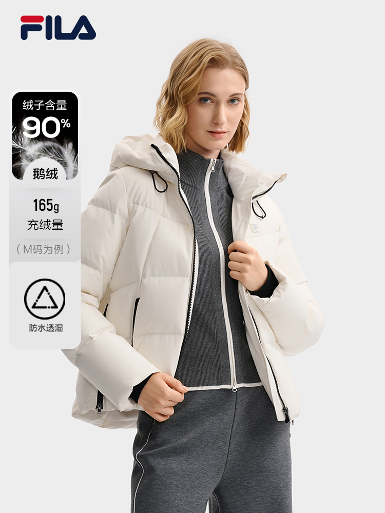 90 Goose down 740+Fila Women's down Jacket 2025 Winter New Model Warm Lightweight Hooded Waterproof Coat