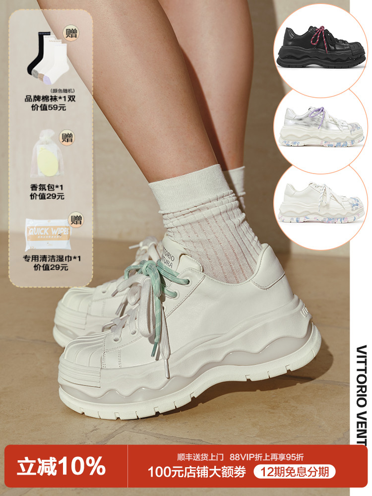 Hong Kong Genuine Leather High-Top White Sneakers for Women 2025 Autumn and Winter Thick-Soled Versatile Panda Color Sports Casual Sneakers Korean Style