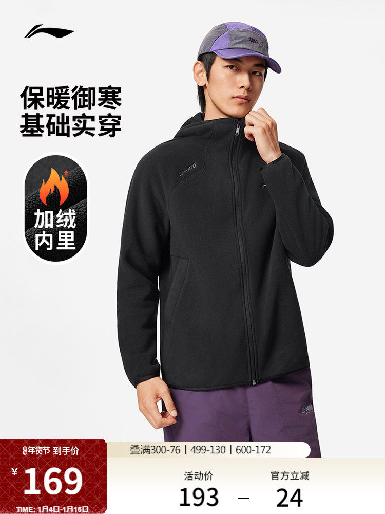 Li-Ning Fleece Jacket for Men, Winter Official New Model, Fleece-Lined Softshell Inner Layer, Warm Polar Fleece Men's Sports Jacket
