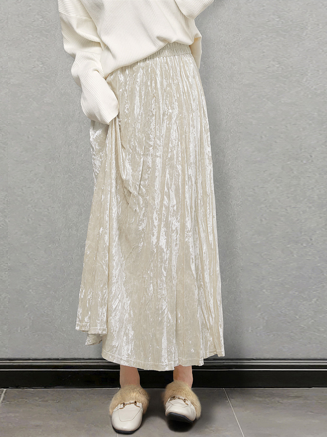 Outlet Clearance Sale, Discounted Velvet Skirt, Winter Pleated Skirt, High-Waisted A-Line Pleated Long Skirt for Women