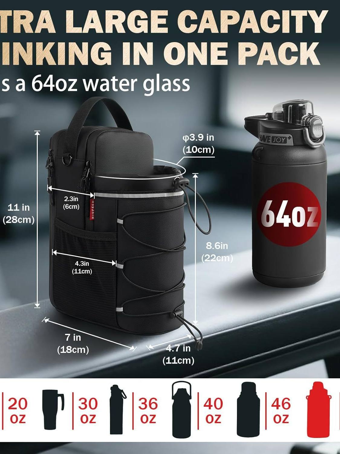 Gym Magnetic Water Bottle Bag with Strong Magnets and Reflective Strips, Water Bottle Pouch, Single Shoulder Crossbody Multifunctional Portable Phone Bag