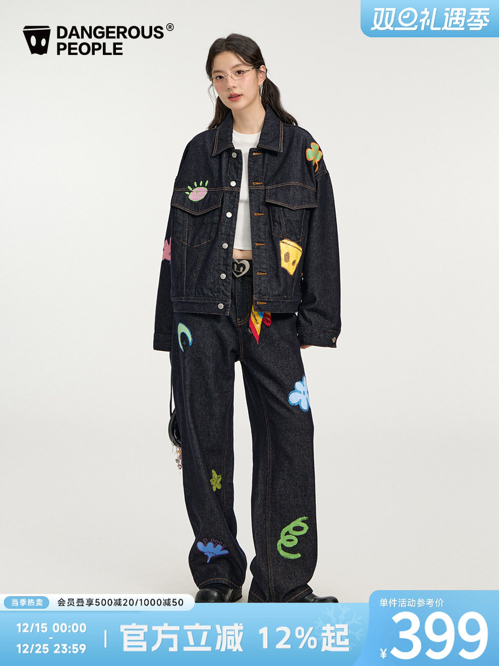 Dangerouspeople Joker Xue Dsp Playful Denim Print Trendy High Street Loose Jacket and Pants Set
