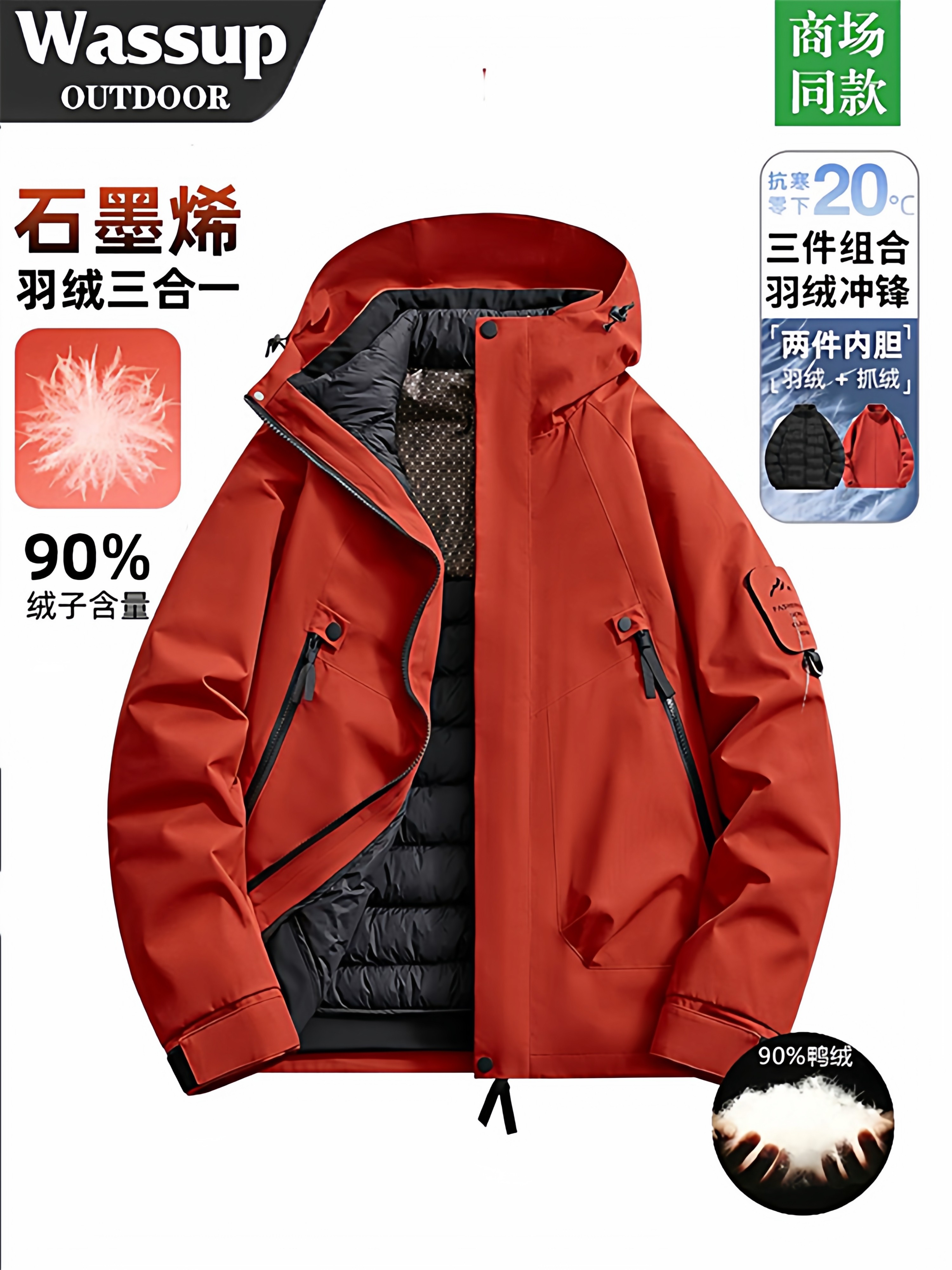 Wassup down Jacket, Softshell Jacket, Three-Piece Set, Mountaineering Clothing, Ski Workwear Jacket, Three-In-One Workwear, Suitable for All Seasons