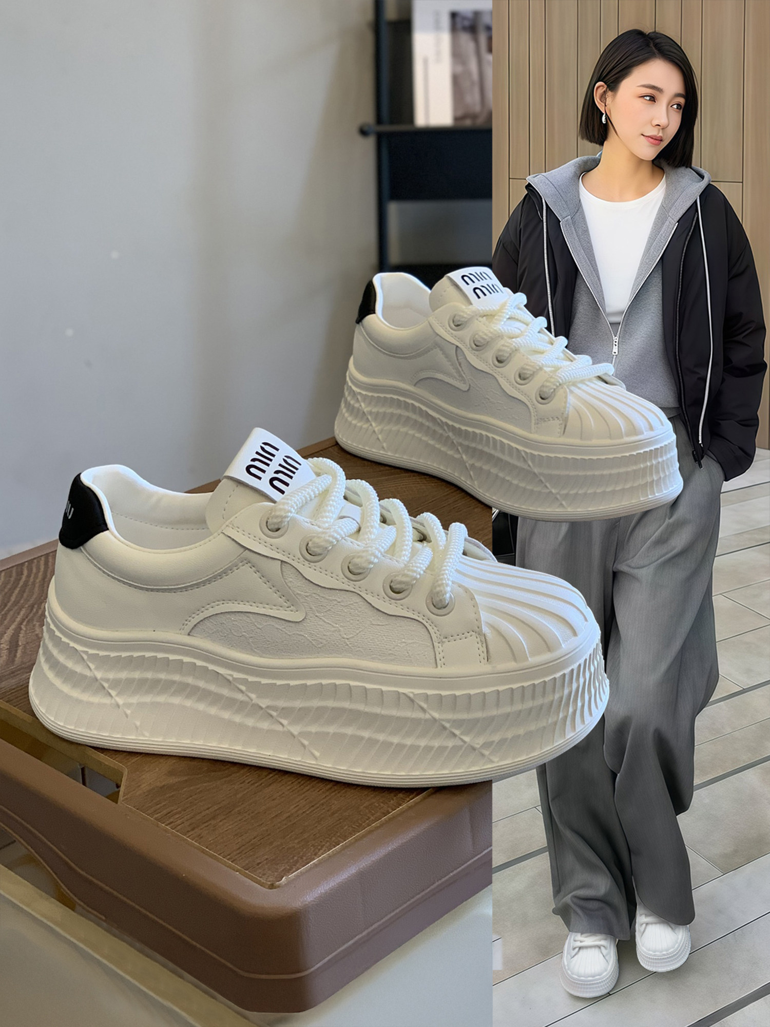 Hong Kong Versatile Korean-Style Shell-Toe Sneakers for Women, 2025 Autumn and Winter New Model, Height-Increasing Thick-Soled Lace-Up soft sole White Sneakers