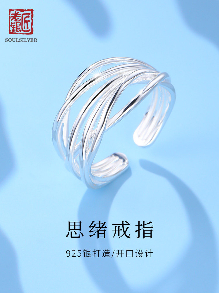 Old Silversmith S925 Silver Ring for Women, New Style, Simple and Versatile, Niche Design, High-End Feel, Pure Silver Index Finger Ring, Open-Ended