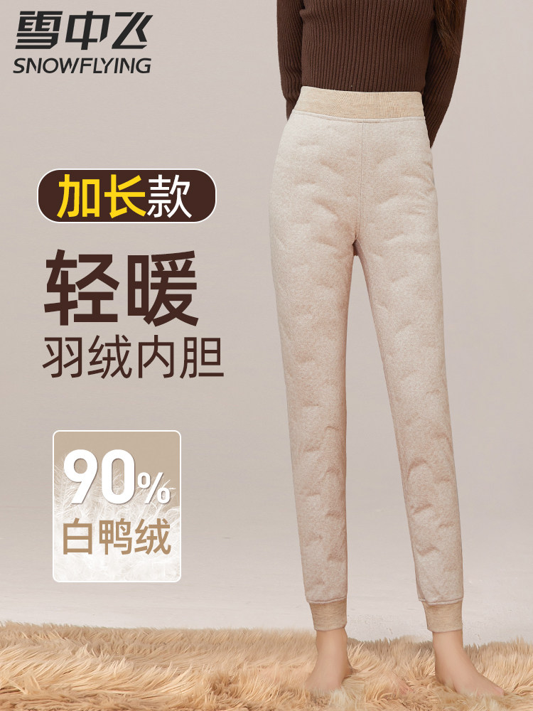 Xuezhongfei Extended down Pants for Women, Winter Inner Wear for Tall Individuals, Base Layer Cotton Pants, Warm Inner Lining, Windproof and Cold-Resistant Trousers