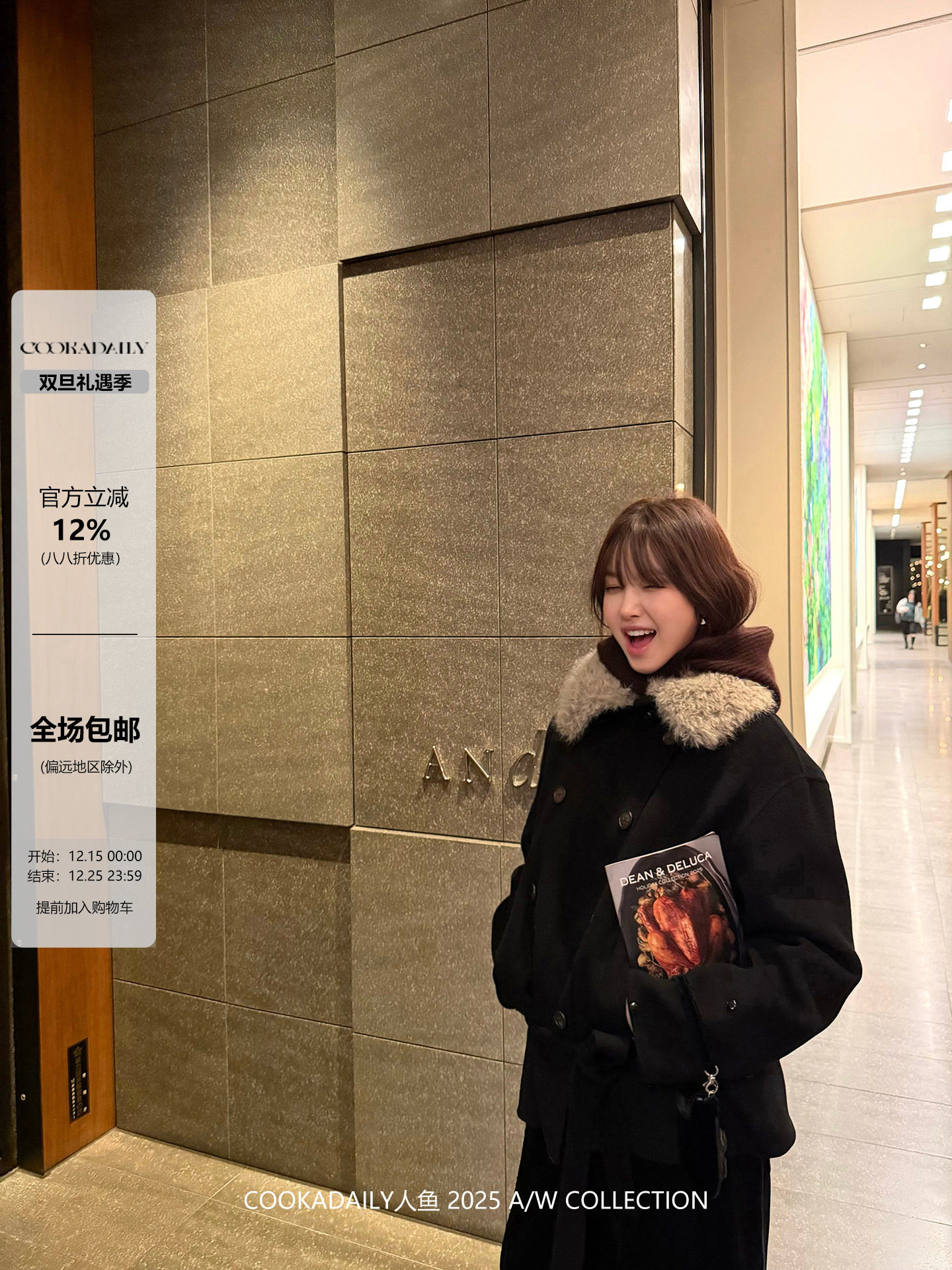 Cookadaily Mermaid Korean-Style High-End Wool Double-Sided Coat with Ribbon, Hat, and Gloves Set