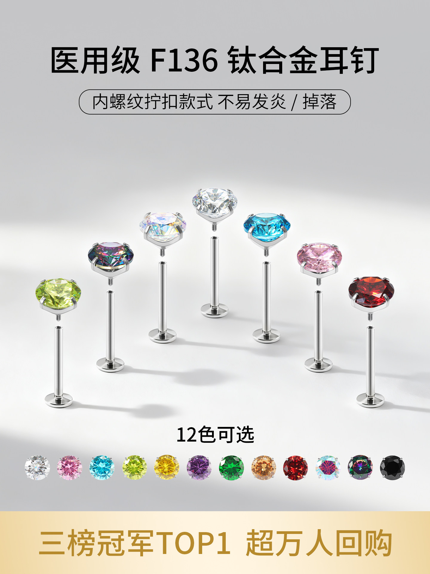 Titanium Alloy Earrings with Internal Spiral, Medical-Grade, Hypoallergenic Ear Studs for Ear Piercing, Cochlear Studs, Titanium Steel Earrings for Women