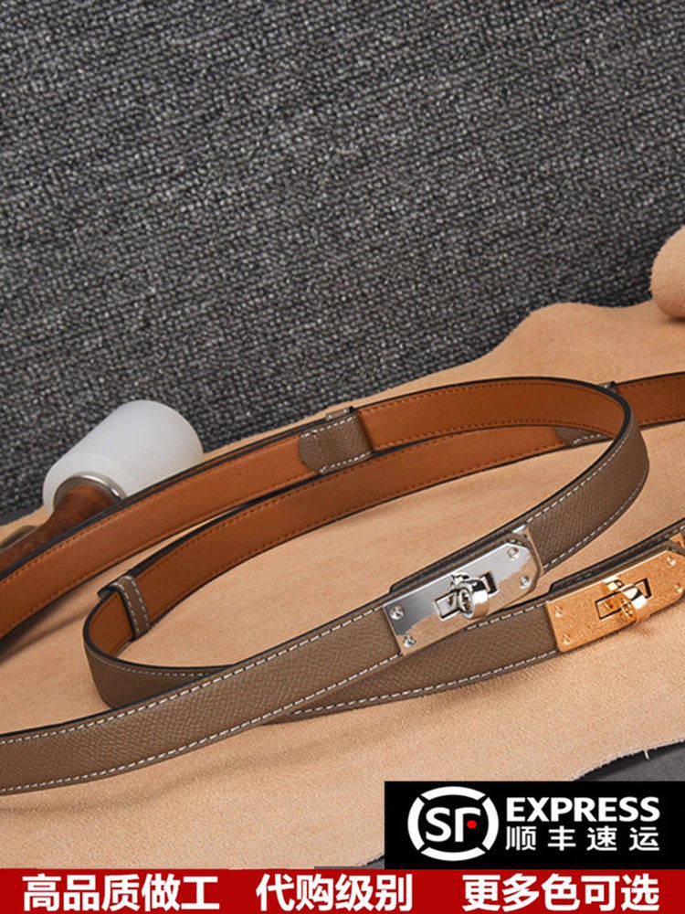 Genuine Leather Buckle Lazy Belt, Cowhide Women's Thin Belt, Narrow Belt, Waist Cincher, Decorative Belt for Suits and Dresses, Premium Quality