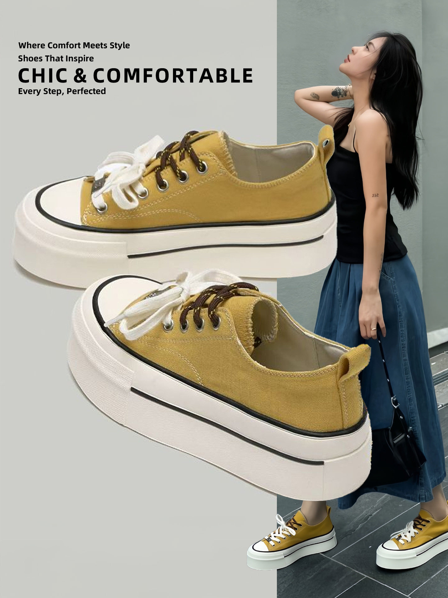 Hong Kong's Popular Canvas Shoes for Women, 2025 Spring New Model, Thick-Soled, Height-Increasing, Versatile, Breathable, Black Low-Top White Sneakers