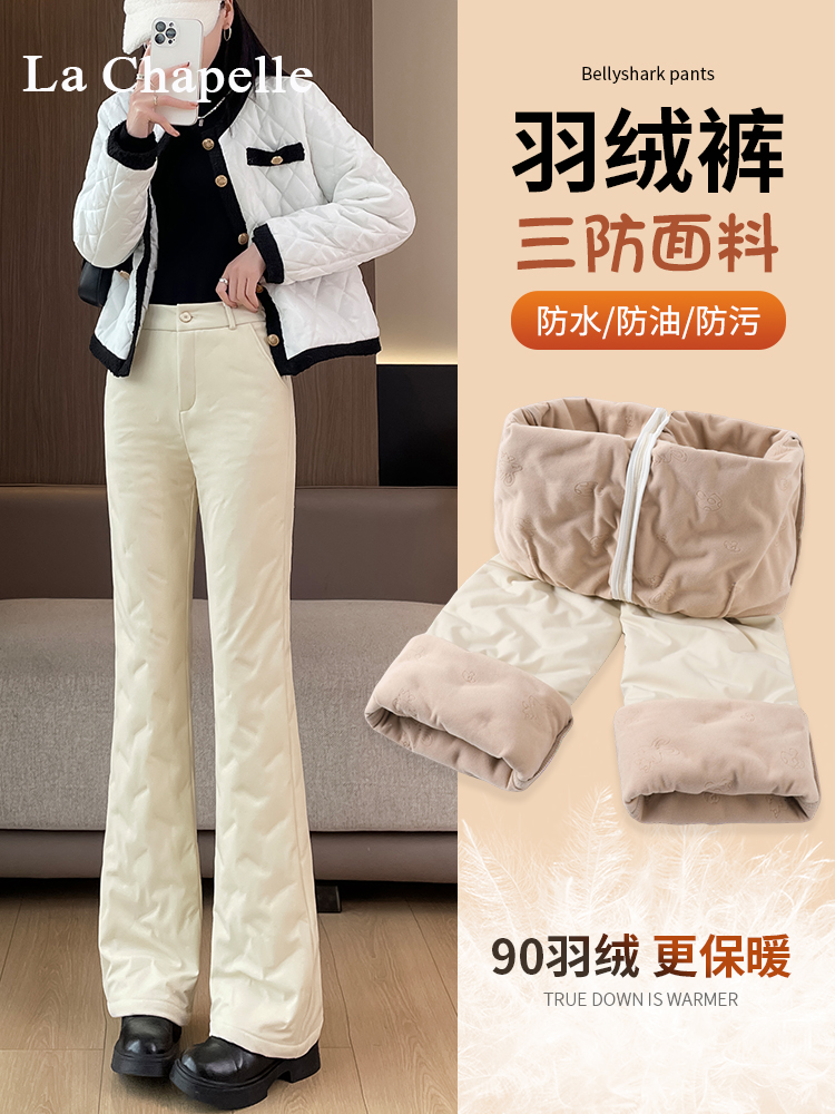 La Chapelle Classy Three-Proof Slightly Flared down Pants for Women Winter Fleece-lined thickened Cold-Resistant Heattech Flared Cotton Pants