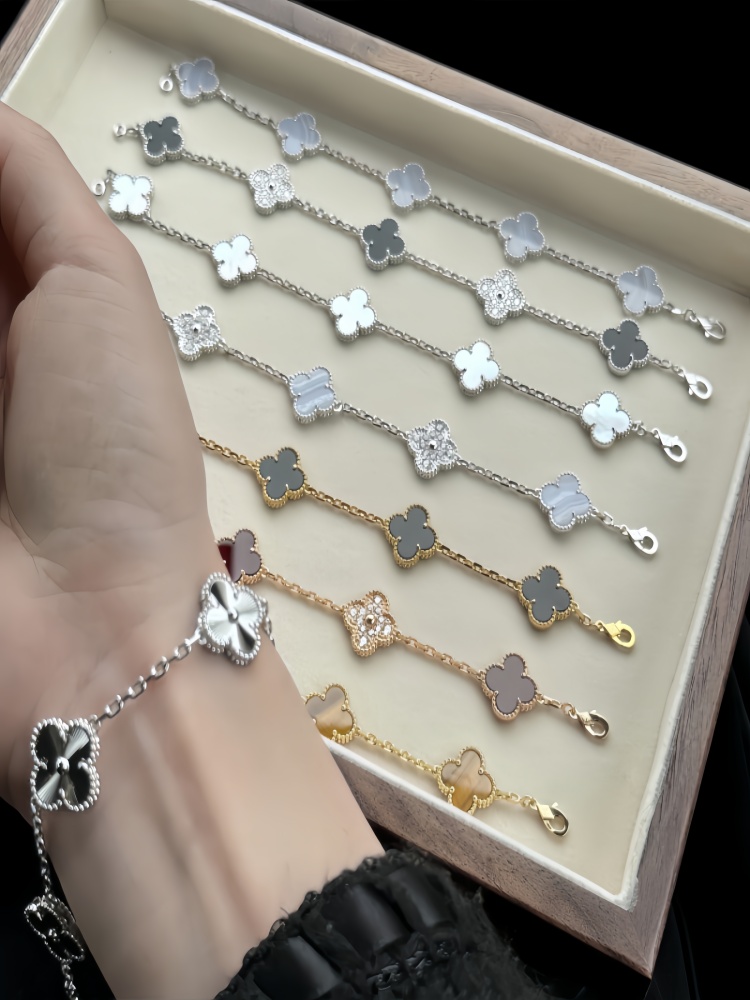 High Version V Gold Plated 18K Gold Four-Leaf Clover Five-Flower Bracelet for Women Niche Versatile Accessible Luxury Classy Sense Gift for Girlfriend
