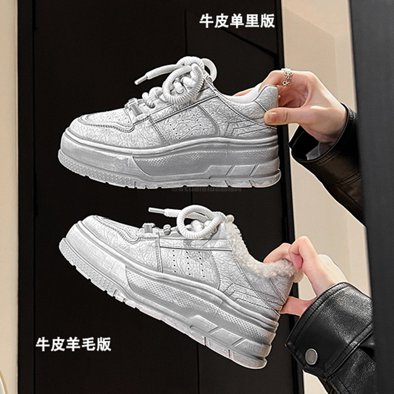 Hong Kong Retro Distressed White Sneakers for Women 2026 Spring/Summer New Style Petite Thick-Soled Height-Increasing Lace-Up Casual Sneakers