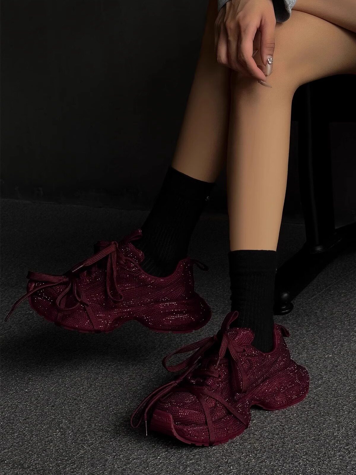 Hong Kong Dad Sneakers for Women 2026 Spring and Autumn New Full Rhinestone Casual Shoes Ancora Red Dad Sneakers Niche Design Women's Shoes