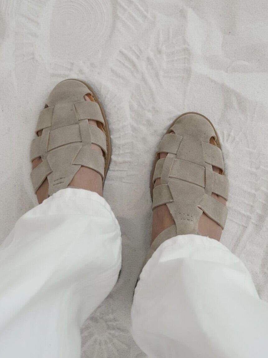 New Roman British Retro Woven Sandals, Comfortable Beach Men's First-Layer Cowhide Korean-Style Versatile Casual Slip-On Shoes
