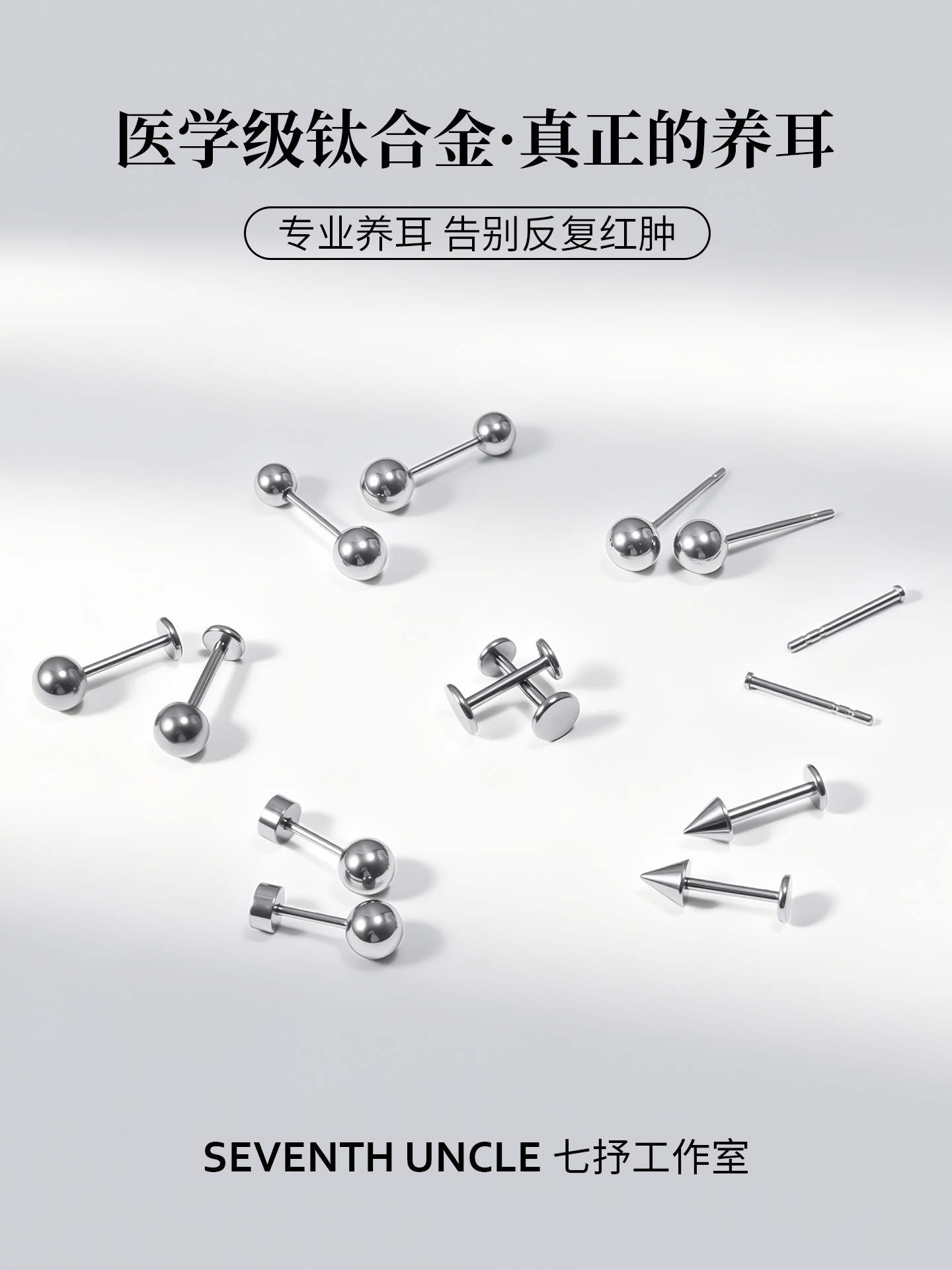 Medical Titanium Alloy Ear Studs for Ear Piercing, Ear Rods, Ear Bone Studs, Internal Spiral Cochlear Studs, Titanium Steel, Women's Sleep-Friendly Earrings That Don'T Need to Be Removed