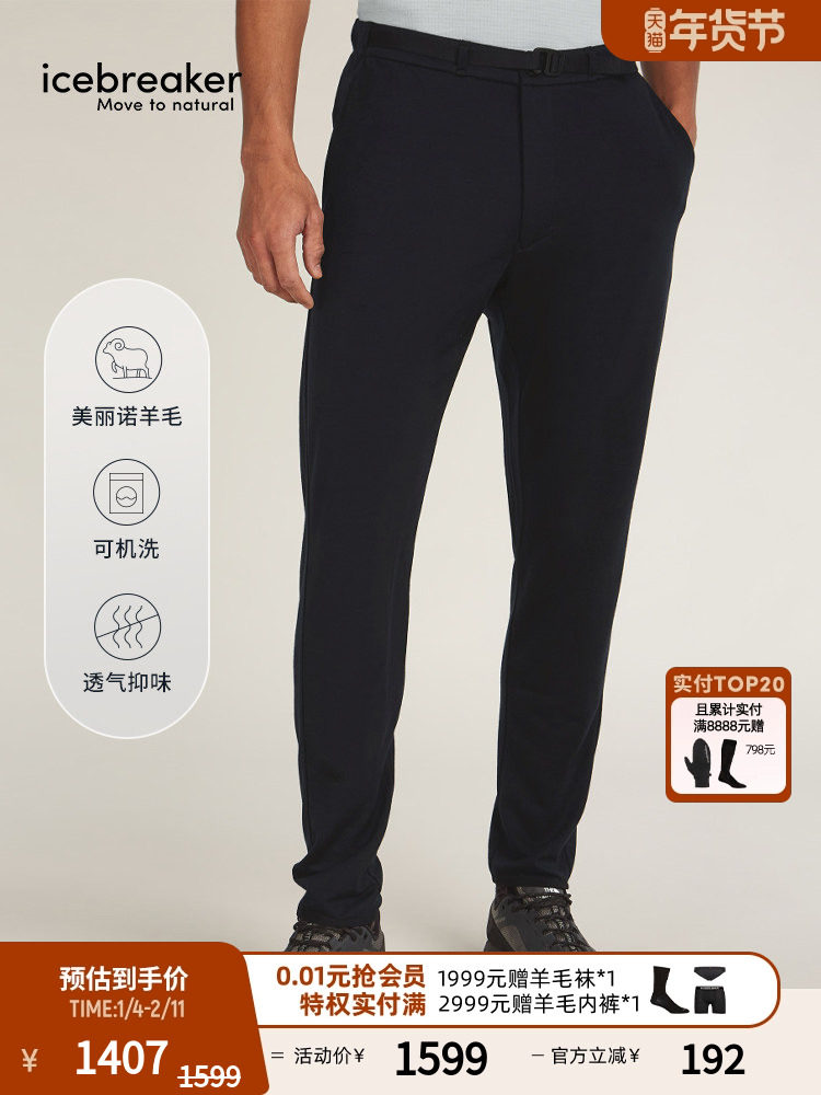 Icebreaker Machine Washable Merino Wool Men's Explore Pants Casual Pants Outdoor Running Hiking