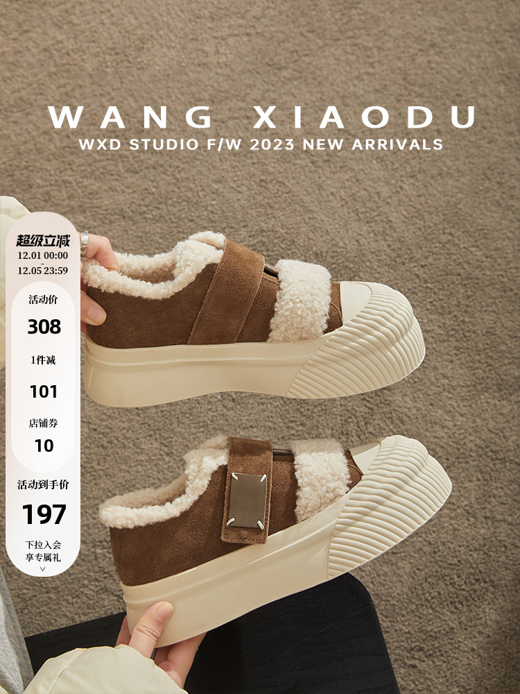 【Wang Xiaodu】Instant Warmth ● Color-Blocked, Fleece-Lined, Thickened, Warm Casual Sneakers for Women, Furry Thick-Soled Biscuit Shoes