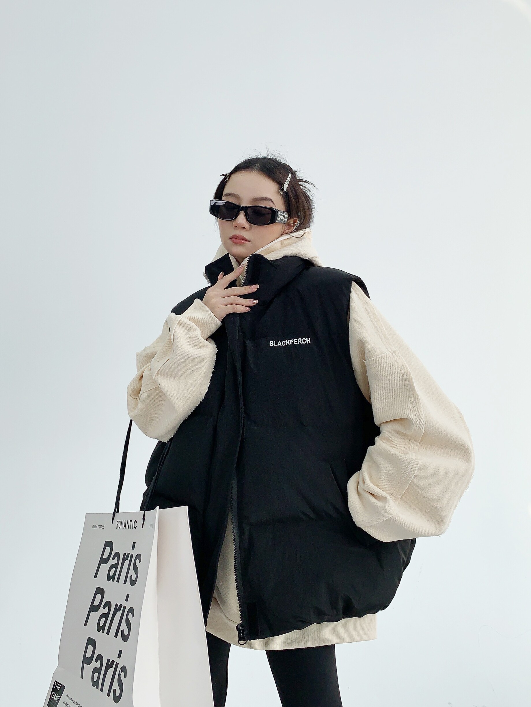 Trendy Winter American-Style Niche Thick European-Style Jacket Loose Embroidered Black Puffer Jacket Cotton Vest for Women and Men
