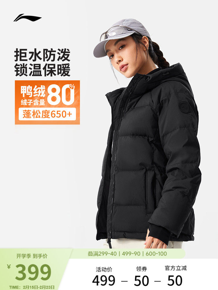 Li-Ning Women's down Jacket Winter New Thickened Short Hooded Sports Coat for Women
