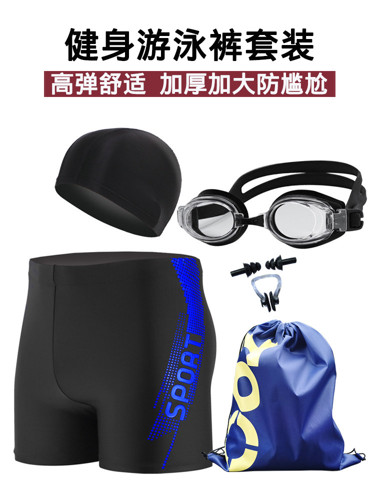 Men's Swimming Trunks, Anti-Embarrassment, Large Size Boxer Briefs, Men's Swimwear, Breathable, Quick-Drying, Hot Spring Pants, Fitness Swimming Equipment Set
