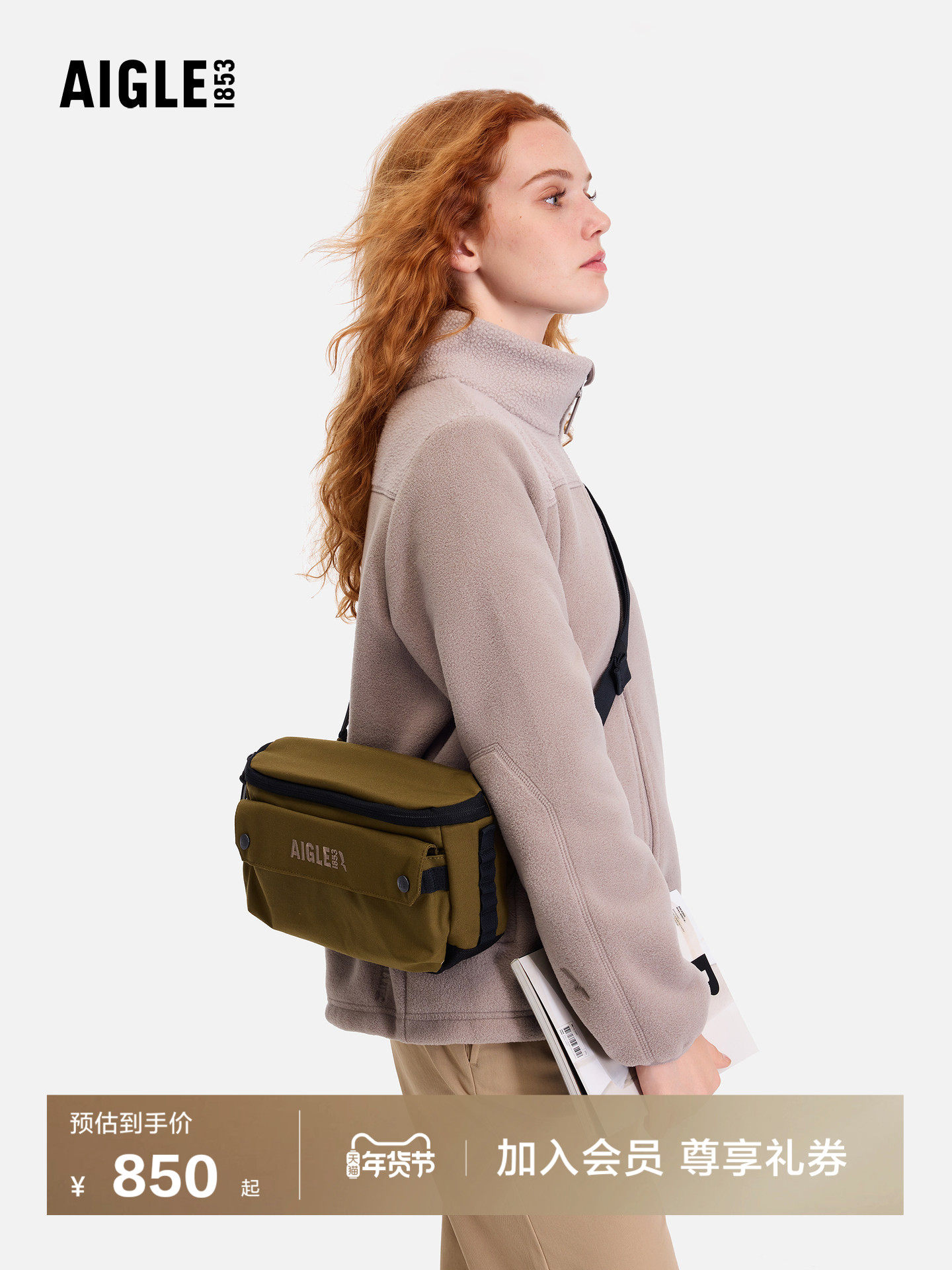 Aigle Unisex Casual Bag, Water-Resistant, Portable Crossbody Bag, Dual-Use Waist Bag, Outdoor Fashion Versatile