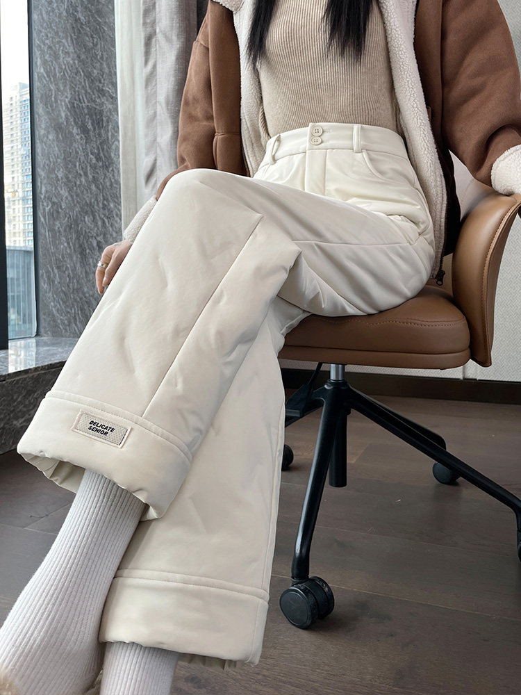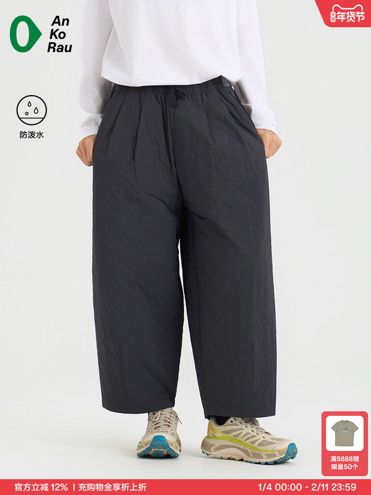 Women's New Winter Travel Water-Repellent Lightweight Warm Loose Quilted Cotton Wide-Leg Pants | Ankorau an Gao Ruo
