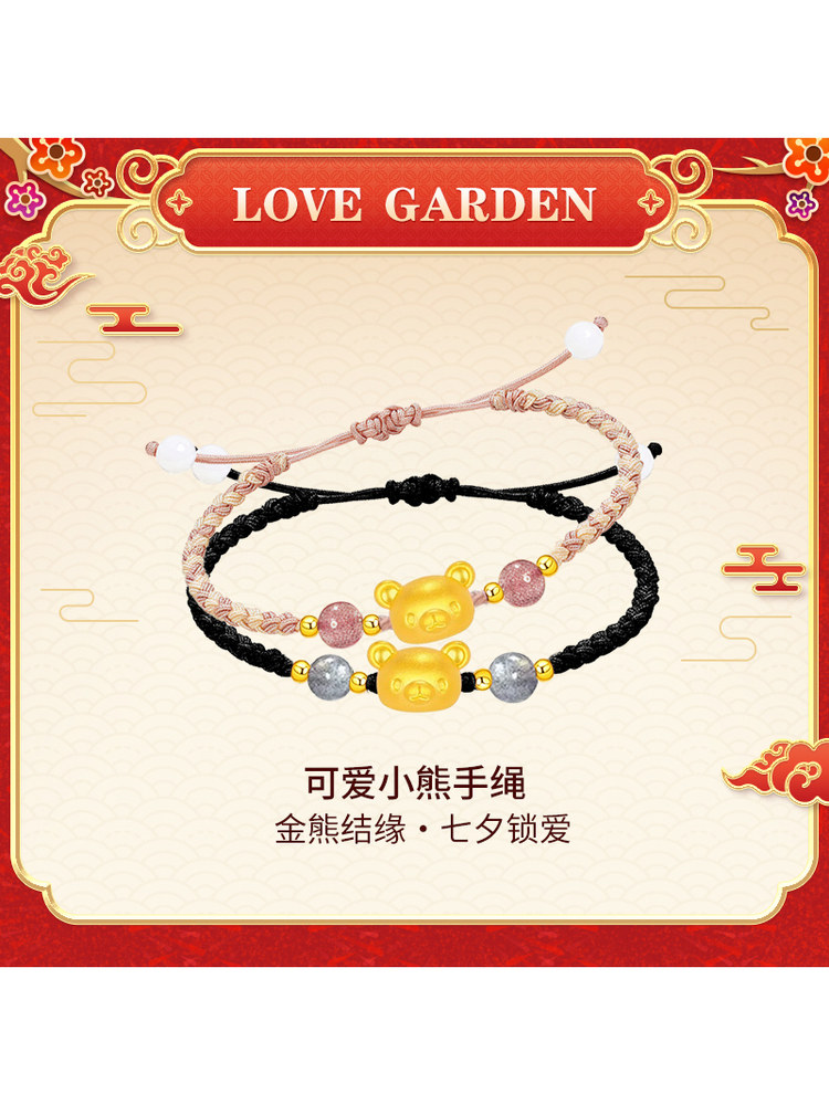 Love Garden Chinese Valentine's Day "Golden Bear Connection · Chinese Valentine's Day Love Lock" Bracelet Couple Style Bracelet That Locks Love for a Lifetime