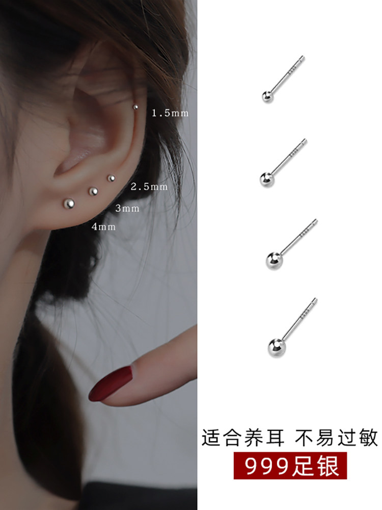S999 Pure Silver Earrings for Women, Ear Piercing Earrings, 2025 New Popular Style, High-End Feel, No Need to Remove When Sleeping, Ear Cartilage Earrings