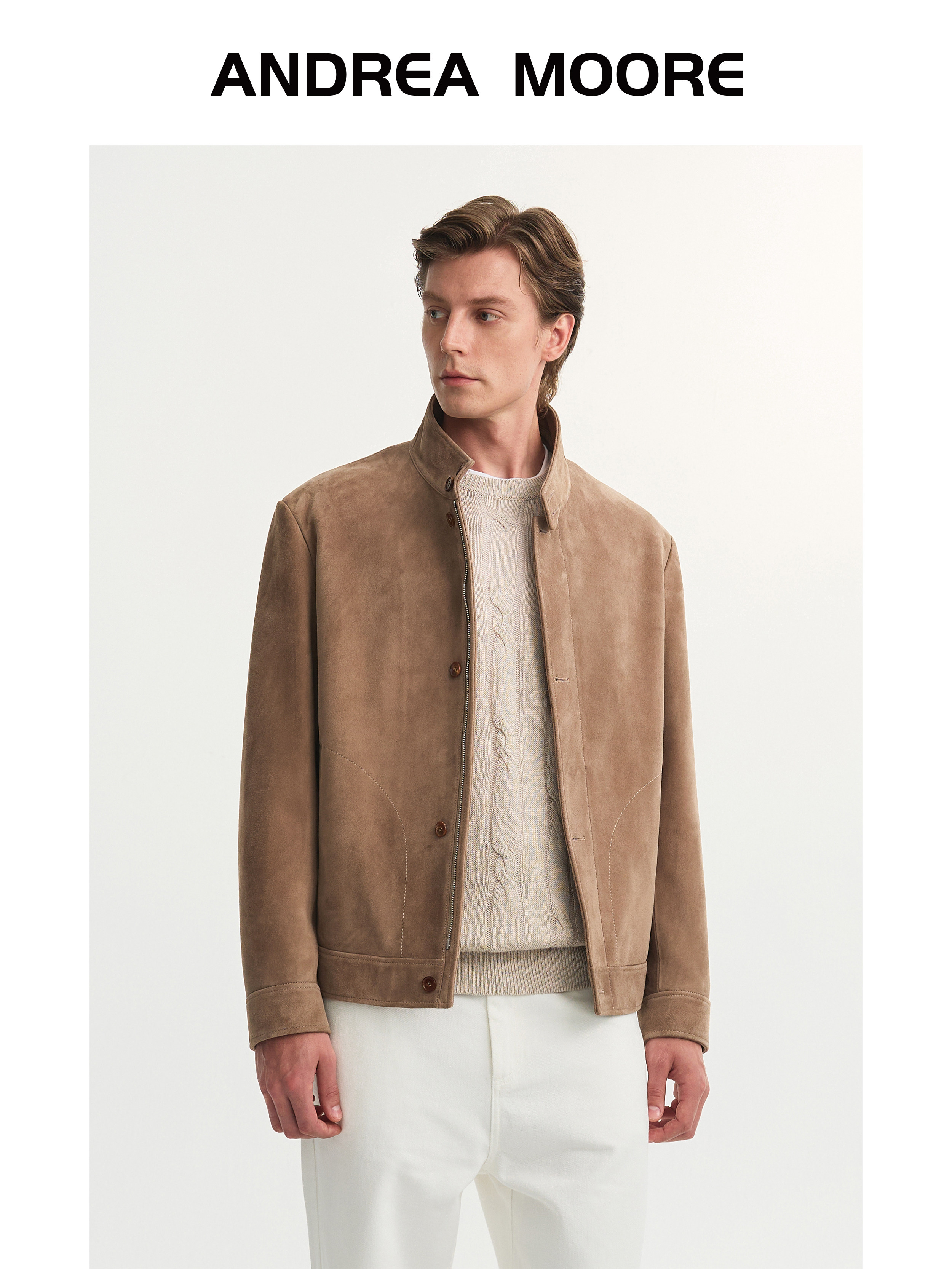 Andrea Moore/Andre Moore Men's Autumn Business Casual Sheepskin Jacket Genuine Leather Stand Collar Jacket