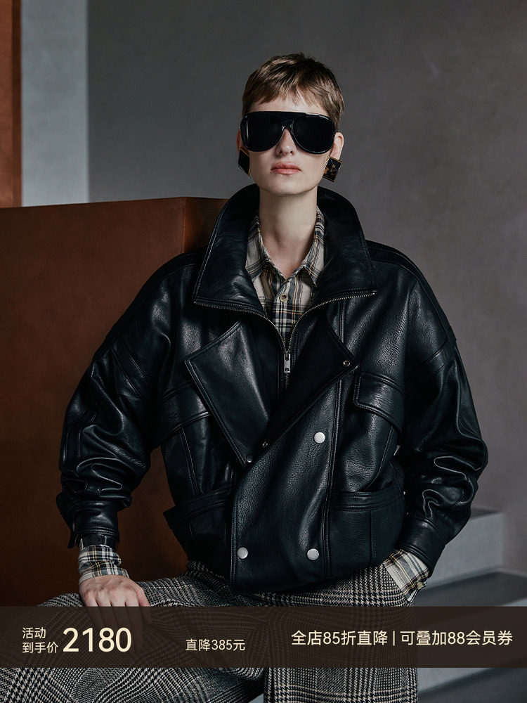 Msbeast British Imported Ys*L Sheepskin Vintage Stand Collar Oversized Leather Jacket | Genuine Leather Jacket