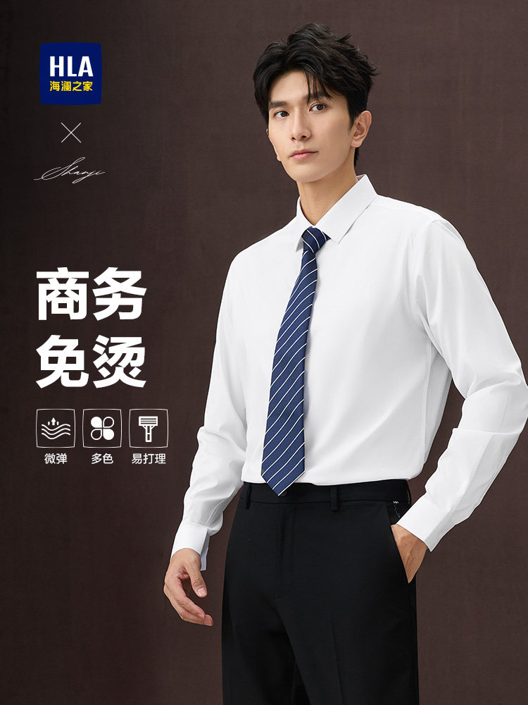 [No-Iron] Hla Business Formal Long-Sleeve White Shirt, Autumn/Winter 2025, New Fleece Option, Suitable for Weddings and Workplace, Men's