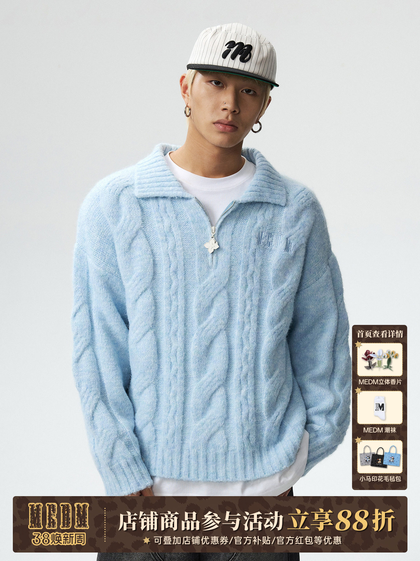 Medm Twist Collar Casual Sweater Jacket for Men and Women, Autumn and Winter American Style Versatile Loose Couple Knitwear Top